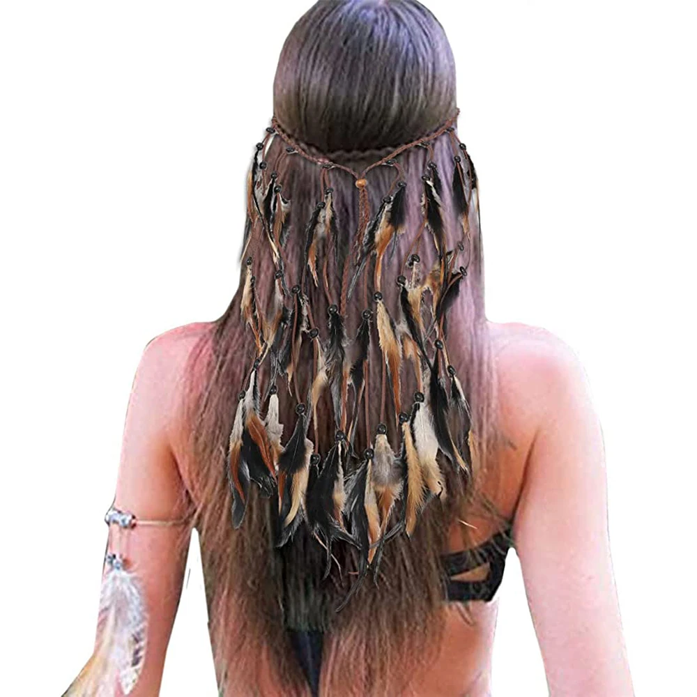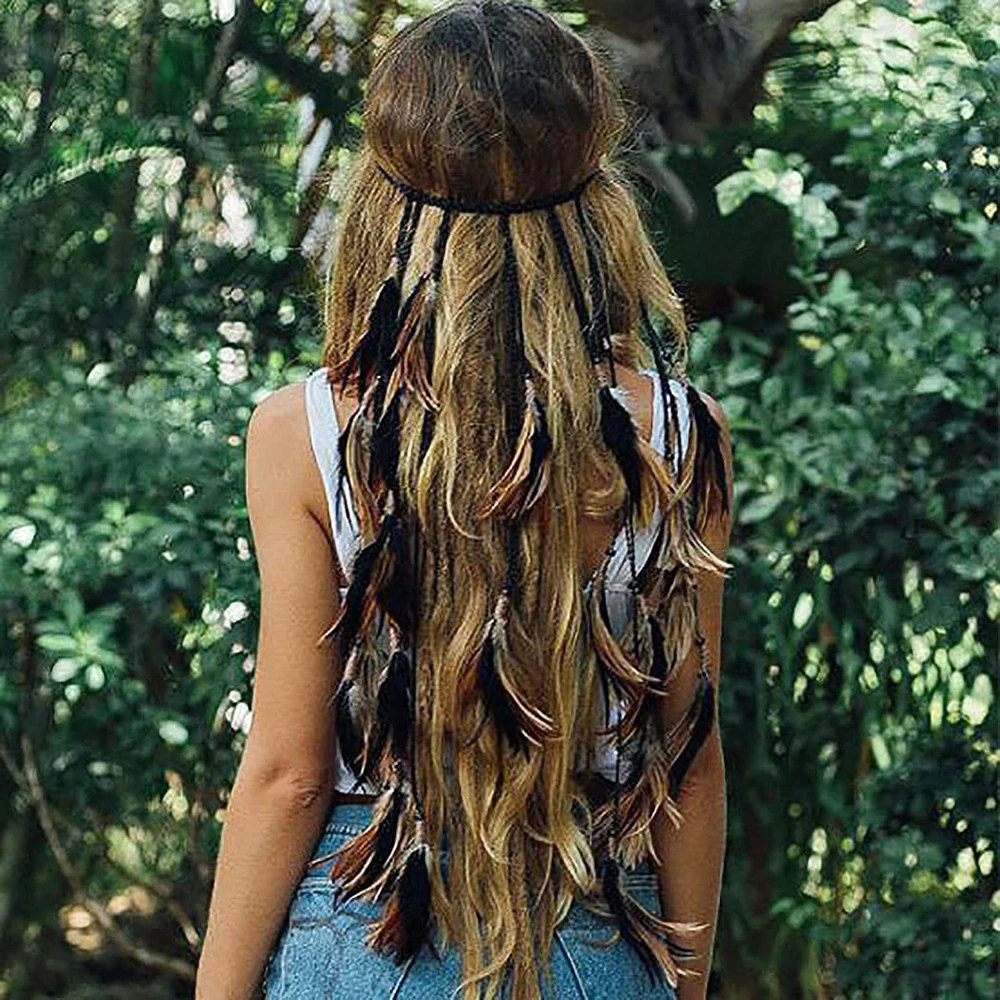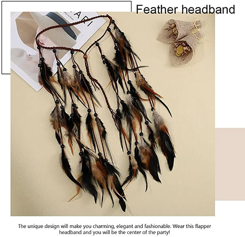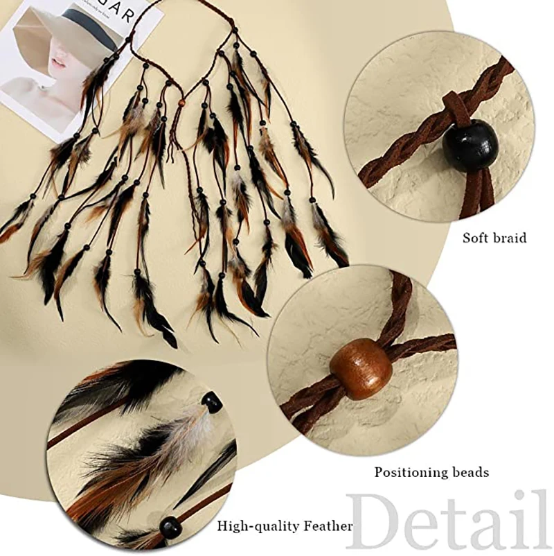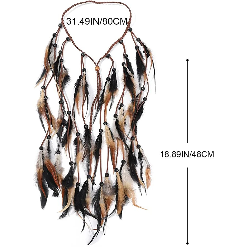 Adjustable Boho Feather Headbands 48cm Indian Peacock Headpiece HairBand Headdress Handmade Feather Hair Accessories